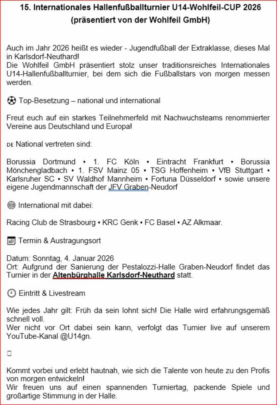 15. Internationales Hallenfußballturnier U14-Wohlfeil-CUP 2026