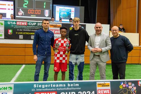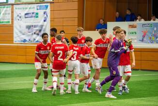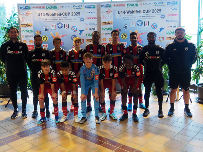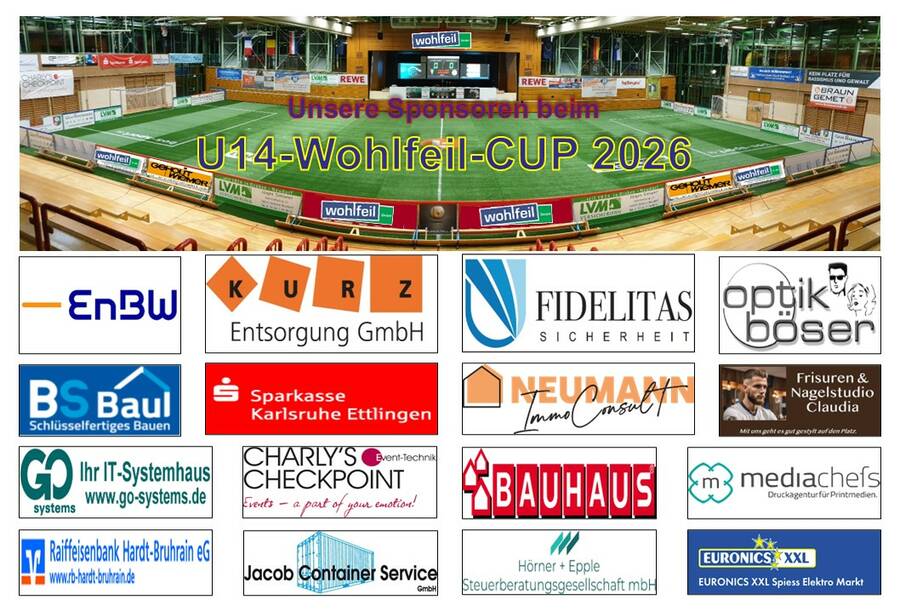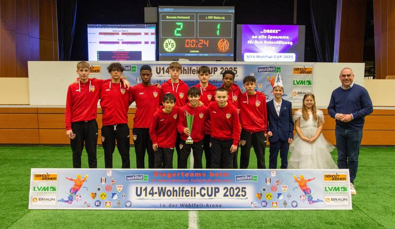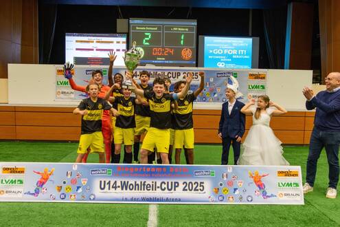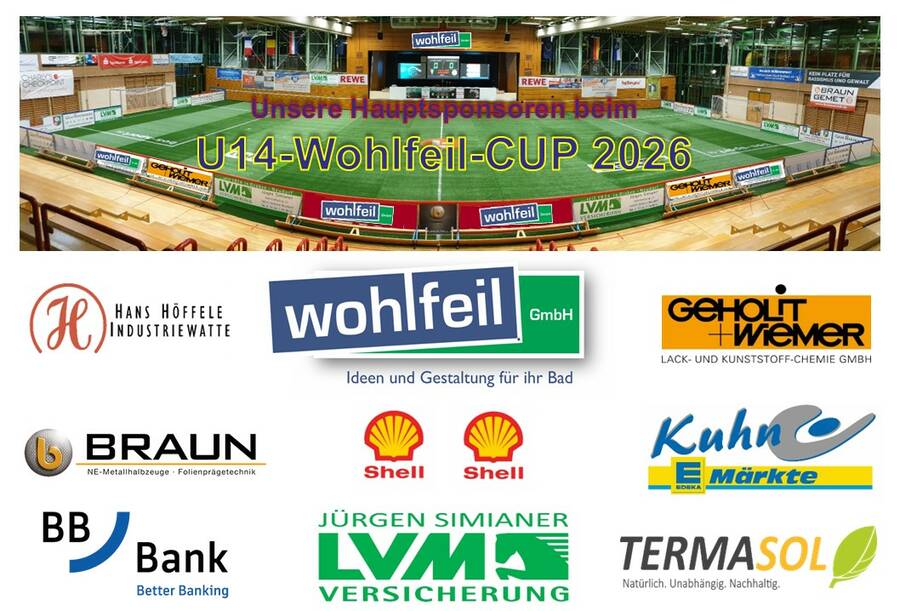 Beim 14. Internationalen U14-Hallenfußballturnier 2025 starteten wir mit unserem neuen Hauptsponsor und Namensgeber unter "U14-Wohlfeil-CUP"