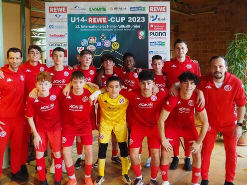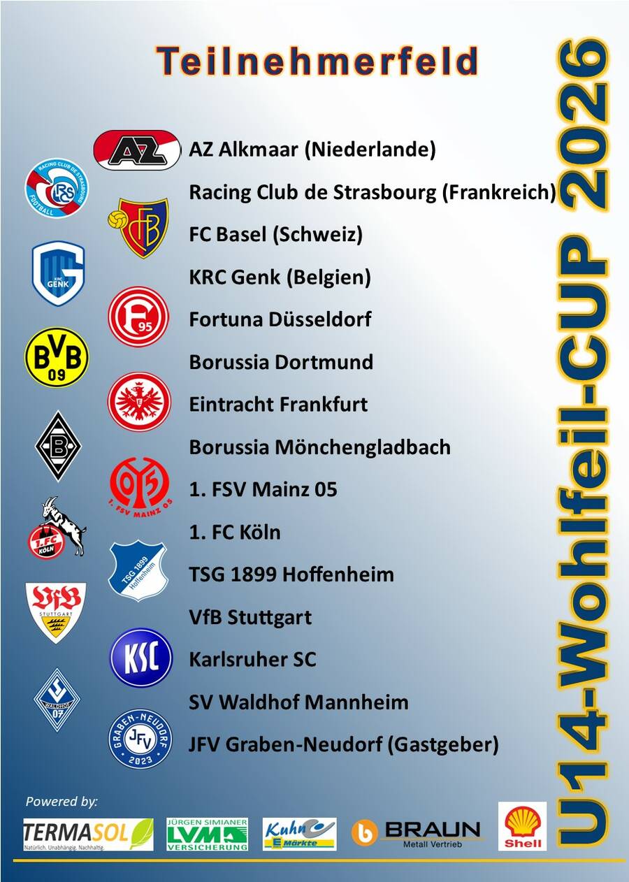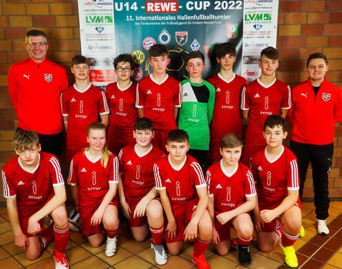 Unsere C-Junioren vom JFV Graben-Neudorf schlugen sich bei der 14. Auflage des U14-Turniers wacker und erzielten immerhin einen Treffer. Neben dem Gastgeberteam mussten nach der Vorrunde auch Bayer 04 Leverkusen, der Titelverteidiger 1. FC Köln, FC Basel und SV Waldhof Mannheim sowie die U14-Nationalmannschaft aus Luxemburg und Racing Club de Strasbourg (als schlechtester Gruppendritter) die vorzeitige Heimreise antreten.
