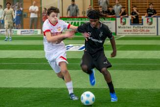 Am frühen Vormittag sah es noch danach aus, als müsste Borussia Dortmund bereits nach der Vorrunde die Heimreise antreten. Nach der Auftaktniederlage gegen den Fulham FC und einem Remis gegen die U14-Nationalmannschaft von Luxemburg gelangen dem BVB aber dann noch zwei Siege (5 : 0 gegen unsere C-Junioren und 1 : 0 gegen den Karlsruher SC). Dies reichte den Westfalen, um als bester Gruppendritter noch weiterzukommen. Im Viertelfinale wartete dann die Borussia aus Mönchengladbach als Gegner, die als einzige Mannschaft in der Vorrunde ohne Niederlage geblieben war. Und im Borussenduell endete die Serie von Mönchengladbach. Am Ende der regulären Spielzeit stand es noch 1 : 1. In der Golden-Goal-Verlängerung waren die Dortmunder dann die glücklichere Mannschaft und erzielten den 2 : 1 Siegtreffer.